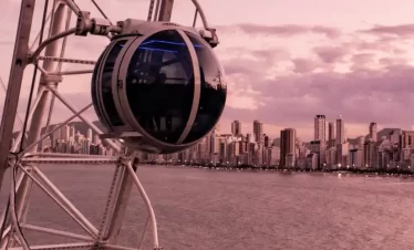 Ingresso Roda Gigante Balneário Camboriú, você terá uma vista panorâmica incrível da cidade, da costa e do Oceano Atlântico!